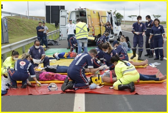 Em casos em que há pessoas feridas, a Defesa Civil providencia em local seguro e acessível por ambulâncias, 3 tipos de tapetes nas cores vermelho, amarelo e verde em função da gravidade.
