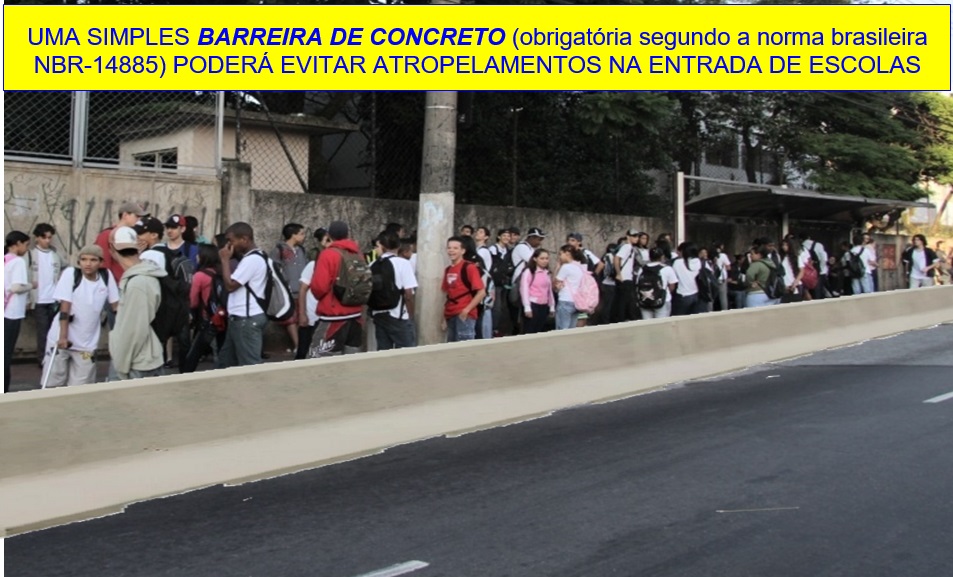 Na entrada de escolas, os escolares expostos ao risco de atropelamento por veículo desgovernado estará protegido com a Barreira de Concreto: