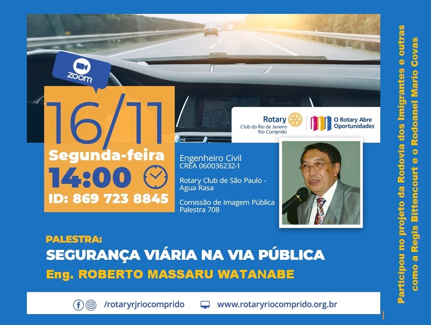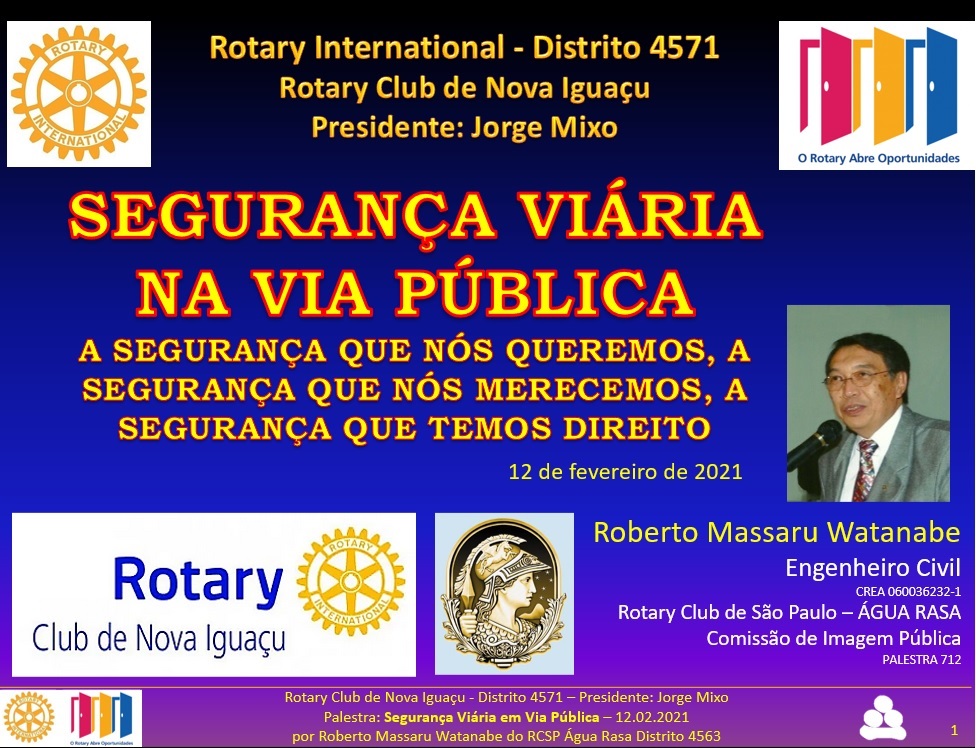 NOTA: Este site é mantido pela equipe do engenheiro Roberto Massaru Watanabe formado pela USP em 1972 e se destina principalmente para estudantes. Watanabe participou do projeto do Rodoanel Mario Covas, Rodovia dos Imigrantes, duplicação da Regis Bittencourt e outros viários como a simulação das vias expressas de Campinas. Pelo caráter pedagógico do site, seu conteúdo pode ser livremente copiado, impresso e distribuido. Só não pode ser pirateado, isto é, copiar e depois divulgar como se fosse de sua autoria. Watanabe resolveu construir este site para fornecer orientações sobre as Leis, as Normas e as Portarias que regem a matéria Segurança no Trânsito desconhecidas por muitas pessoas e, objetivando auxiliar as pessoas na pesquisa das causas das mortes.