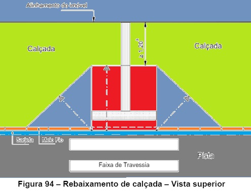 calçada rebaixada: rampa construída ou implantada na calçada, destinada a promover a concordância de nível entre estes e o leito carroçável.