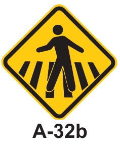 Uma variação da placa A-32b é a placa A-33b que se refere a travessia de escolares, também regulamentada no manual.