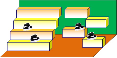 o outro lado continua com a mesma largura, permitindo que o pé da pessoa se apoie por inteiro no degrau.