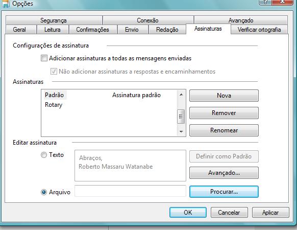 Ano Rotário.Voce pode criar uma Assinatura Automática. Isso facilita a finalização de suas mensagens pois um simples clique no ícone INSERIR ASSINATURA vai inserir os seus dados.