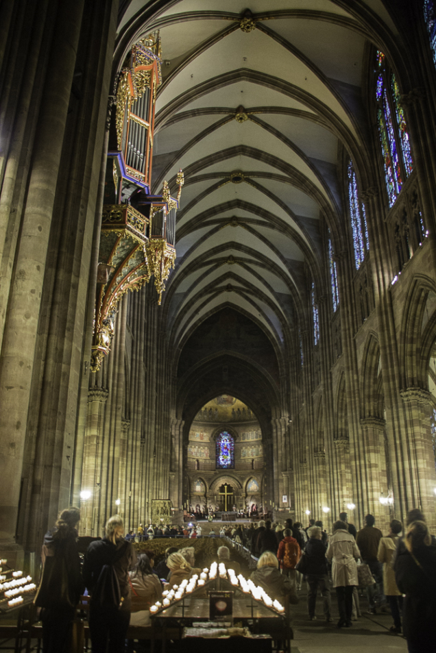 Uma das características que chama muito a atenção dos turistas que visitam uma catedral da era medieval é a excessiva altura do pé direito. Pé direito é a distância entre o piso e o teto. Essas catedrais têm o pé direito muito alto por razões meramente arquitetônicas? Existe alguma razão específica? Por que gastar dinheiro (muito dinheiro) para construir pilares e paredes altíssimas? Mero capricho estético? Por qual razão prática a Catedral de Estrasburgo (construída na França entre 1176 e 1439) tem um Pé Direito de 32 metros? Por que 32 metros? Não poderia ser 31 e, assim, gastar menos dinheiros dos fiéis? Nas regiões frias da Europa como Alemanha e França era muito difícil sair de casa para ir à missa aos domingos. Vento frio e neve acumulada nas ruas eram grandes obstáculos. Saíam de casa muito bem agasalhados e todos portavam uma pá. Pá para tirar a neve e ir abrindo caminho. Então, quando os fiéis chegavam na igreja queriam mesmo é ficar longe do frio. Então a igreja era herméticamente fechada e não ficava nenhum buraquinho que seja por onde o ar frio pudesse entrar na igreja. Até o buraco da fechadura tinha uma tampinha para não entrar vento frio por alí. |