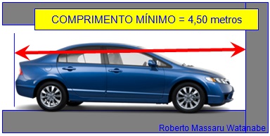 A vaga deverá ter capacidade para comportar, com segurança, um veículo de passeio completo (caso de condomínio residencial). Segundo o Código Brasileiro de Tránsito Brasileiro (lei federal Lei nº 9.503, de 23-9-97), o veículo de passeio, classificação VP, tem dimensão máxima de 5,80 metros e como tal recebe LICENÇA para circular livremente em todo o Território Nacional.