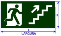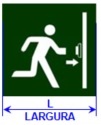 A norma brasileira de segurança contra incêndio e pânico, NBR-13434-2, apresente na Tabela 1 as dimensões mínimas de placas em função da distância em que elas precisam ser visíveis. Reproduzo a tabela: