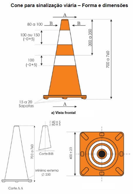 Conforme norma NBR-15071 - Cones para Sinalização Viária