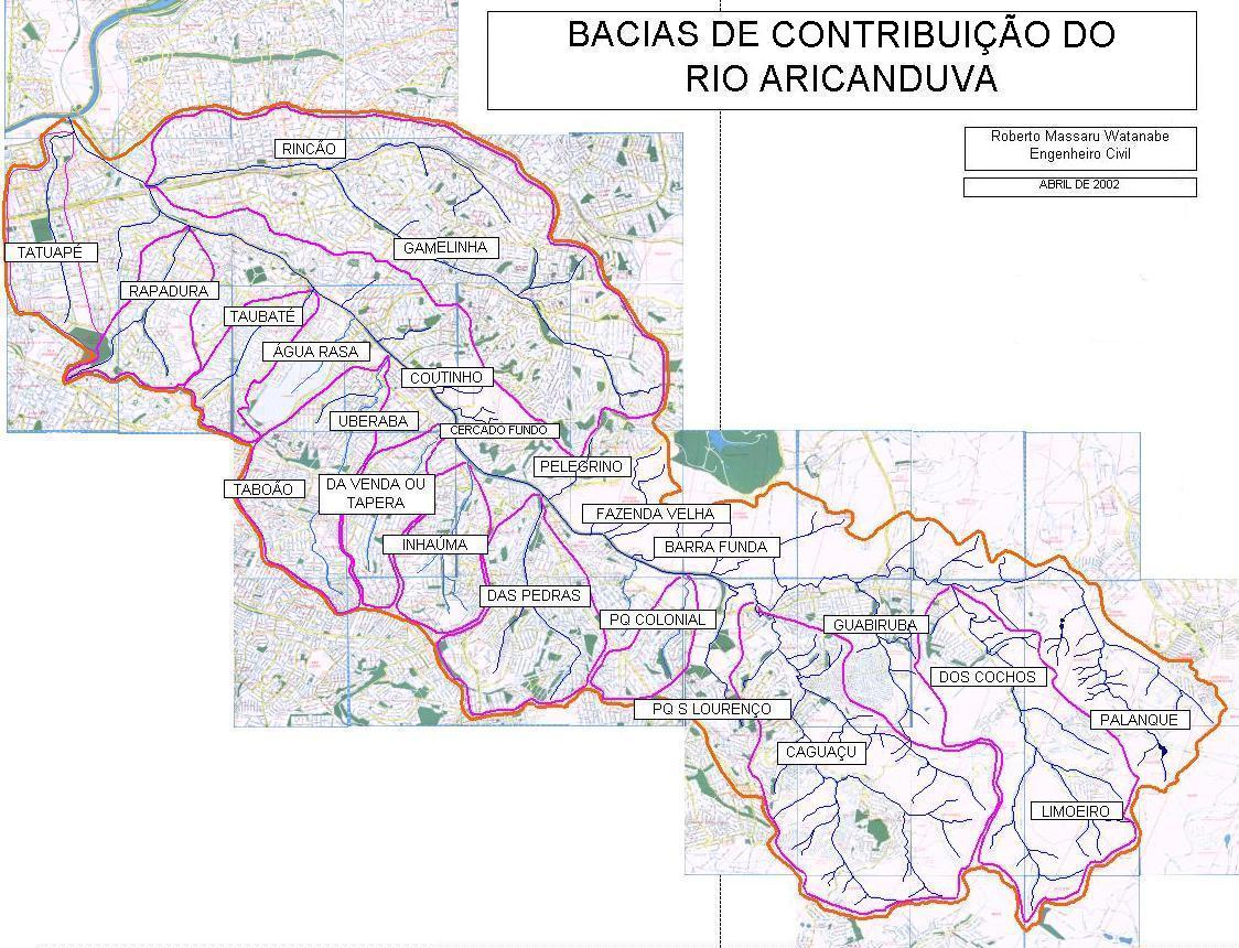 ANEXO: Veja um mapa completo de toda a bacia de contribuição do Rio Aricanduva com todos os seus afluentes.