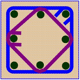 O mesmo tipo de problema vamos encontrar nos pilares largos. Então intercalamos um outro tipo de estribo, como no desenho abaixo: