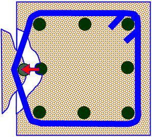 Dessa forma, há uma tendência das armaduras de vergarem "para fora" do pilar pelo efeito da flambagem: