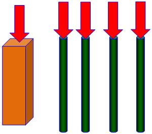 Podemos imaginar o concreto e as armaduras trabalhando separadamente, cada um dando a sua contribuição para a resistência do pilar, isto é, se o peso sobre o pilar é de 10.000 kgf, o pilar aguenta, por exemplo, 3.700kgf e os ferros (em conjunto) aguentam o restante 6.300kgf:
