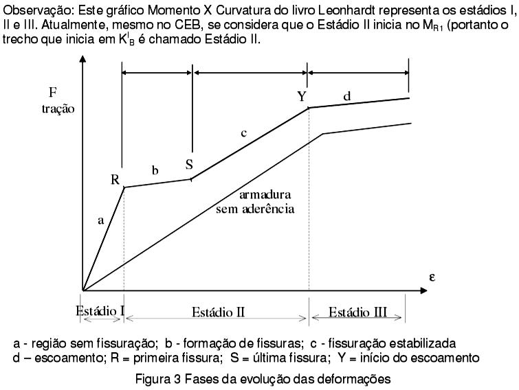 ESTÁDIO I – É a situação em que a força de compressão C não chega a “esmagar” o concreto na zona comprimida e, ao mesmo tempo, a força de tração T não chega a “romper” o concreto na zona tracionada. Embora haja uma “tendência” ao rompimento do concreto na zona tracionada, isto não chega a ocorrer, então não surgem fissuras.