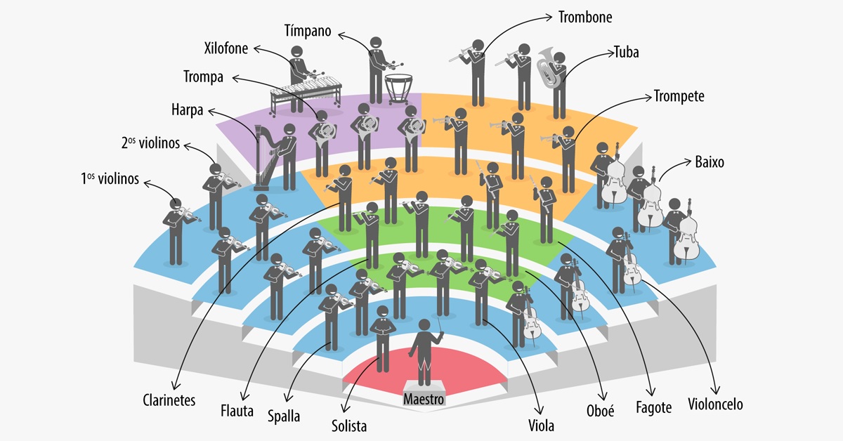 Assim, você os sons dos violinos saindo pela caixa da esquerda e os sons dos baixos saindo pela caixa da direita.
