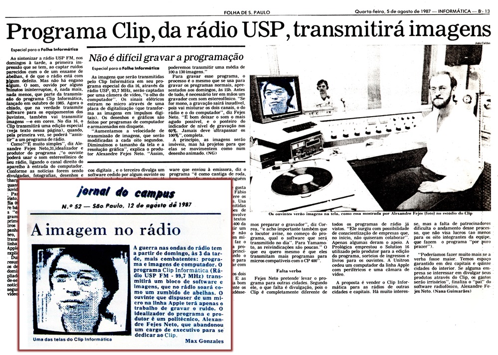O Alexandre Fejes Neto, produtor do probrama Clip Informática da Rádio USP FM, bolou um jeito de usar um dos canais da frequência FM para a transmissão de imagens enquanto que o outro canal continuava a transmitir o áudio normal do programa.