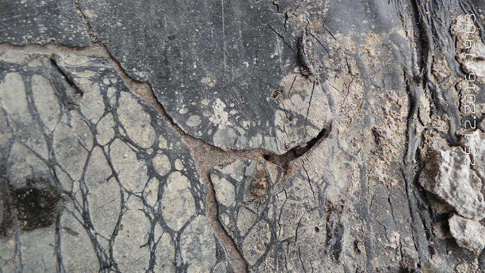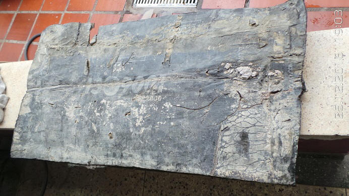 Este é o lado de baixo, a face que recebeu a chama do maçarico e ficou grudada na laje: