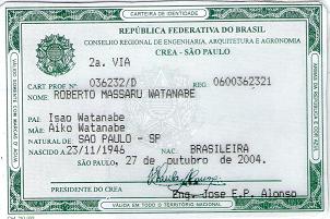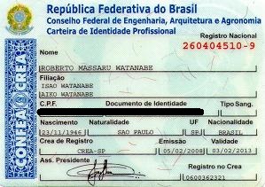 O Profissional Habilitado é identificado pela Carteira de Identidade expedida pelo CREA Conselho Regional de Engenharia e Arquitetura. Veja exemplo: