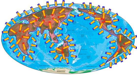 As setas vermelhas é o fluxo do ar mais quente e as setas azuis é o fluxo (vento) do ar mais frio.