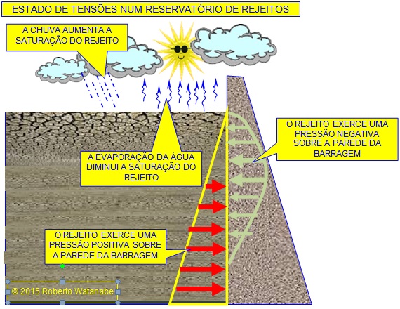A Barragem que contém Rejeito de Mineração, por ser formado por grãos muito fino, tem um comportamento diferente de uma Barragem que contém Água e diferente também de um Muro que contém um talude. Veja cada uma dessas situações separadamente: