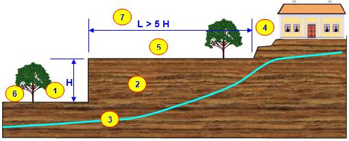 4 - Não pode haver casas ou outro tipo de sobrecarga na parte de cima do talude numa estensão de 5 vezes a altura;
