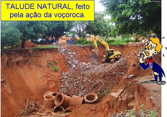 Caso de erosão, que o povo chama de "cratera", formada pela voçoroca, um fenômeno geológico não muito bem conhecido e sem controle que avança lentamente, engolindo tudo que tem pela frente: