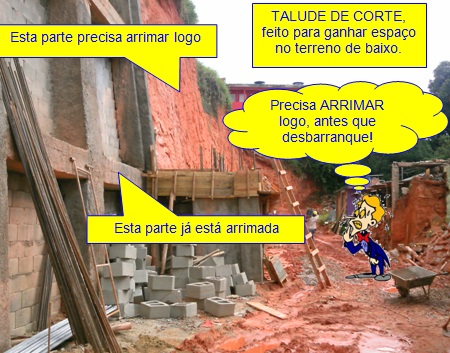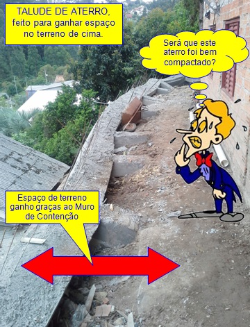 Caso de talude artificial feito para ganhar espaço no terreno de baixo:
