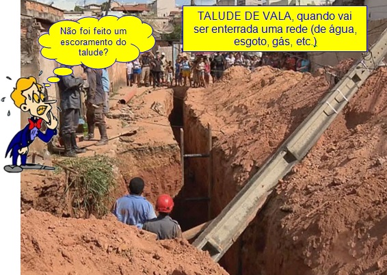Caso de talude artificial formado pela escavação de uma vala para instalação de tubulação enterrada, de água, esgoto, gás e outras redes: