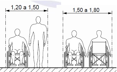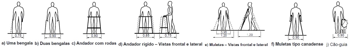 P.O. – pessoa obesa;4.1 Pessoas em pé - A Figura 1 apresenta dimensões referenciais para deslocamento de pessoas em pé.