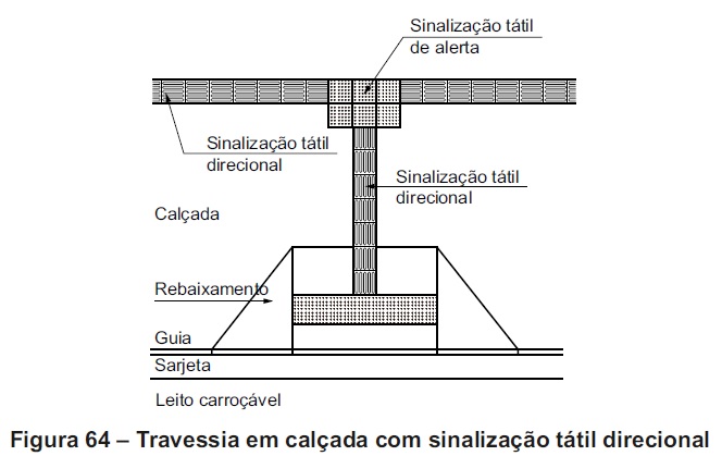 6.12.7 Travessia de pedestres em vias públicas ou em áreas internas de edificações. As travessias de pedestres nas vias públicas, nas vias de áreas internas de edificações ou em espaços de uso coletivo e privativo, com circulação de veículos, devem ser acessíveis das seguintes formas: com redução de percurso, com faixa elevada ou com rebaixamento de calçada. A definição da localização das travessias nas vias públicas (no meio de quadra, próximo às esquinas ou nas esquinas) é de responsabilidade do município.
