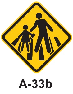 Uma variação da placa A-32b é a placa A-33b que se refere a travessia de escolares, também regulamentada no manual.