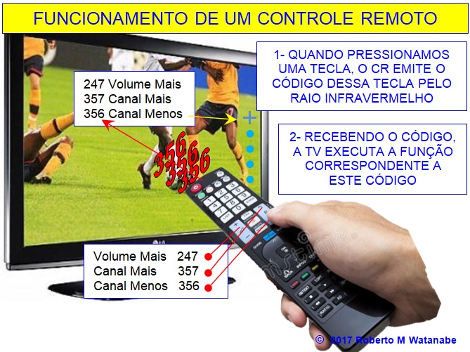 O sensor VS-1838 é um componente que recebe o raio infravermelho emitido por qualquer Controle Remoto baseado na luz infravermelha. Os CRs emitem raio infravermelho na forma "codificada" contendo o código da tecla que foi pressionada no controle. Os aparelhos comandados por controle remoto possuem, internamente, uma tabela de códigos e funções e essa tabela é diferente de um fabricante para outro. É por isso que um controle remoto da TV de uma certa marca não serve para a TV de outra marca. Quando você pressiona uma tecla no controle remoto, ele consulta uma tabela interna e emite um raio (invisível) que é "codificado", isto é, carrega o código da tecla que foi pressionada. O aparelho de TV, ao receber o raio, interpreta o código trazido pelo raio e, consultando a tabela interna, descobre qual é a função desejada pelo usuário.