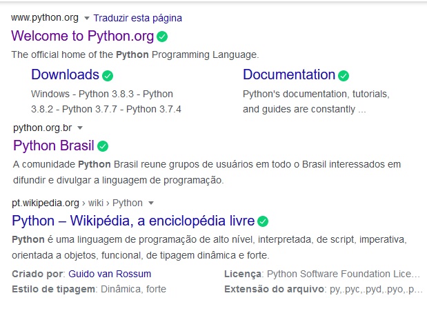 Selecionar o site original www.python.org.