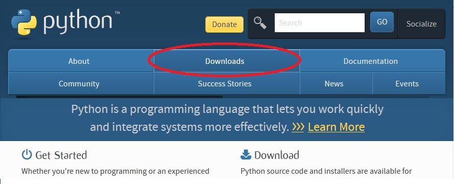 2o PASSO: No site da PYTHON, clicar em DOWNLOADs.