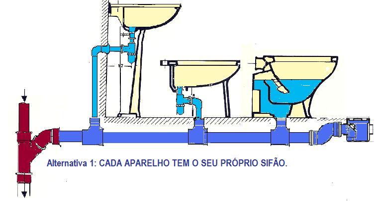 Artigo 15º - Os aparelhos sanitários, quaisquer se sejam os seus tipos, serão desconectados dos ramais respectivos por meio de sifões individuais com fecho hidráulico nunca inferior a 5 cm, munidos de opérculos de fácil acesso à limpeza ou terão seus despejos conduzidos a um sifão único, segundo a técnica mais aconselhada.