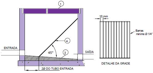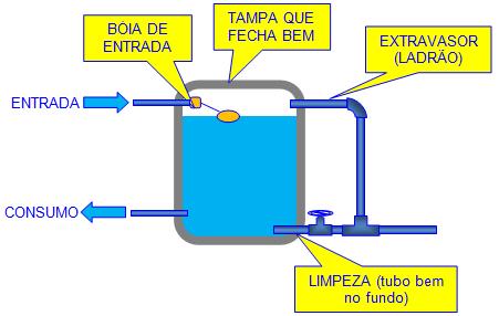 III – extravasor com diâmetro superior ao da canalização de alimentação (vulgo ladrão), não desaguando na calha ou no condutor do telhado e sim em ponto perfeitamente visível;