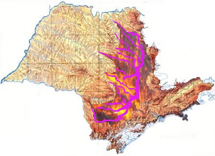 Dentre os vários tipos de modificações que a terro sofreu e ainda sofre, aquela que nos interessa de perto são os Derrames de Basalto. São ocorrências girantescas, a terra abre uma fenda com centenas de quilômetros de extensão e por esta fenda sai o magma super quente na forma de lava que vai se espalhando lentamente. O desenho abaixo dá uma ideia de como aconteceram esses derrames.
