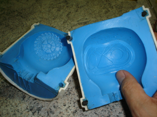 2 - Confecção de um Molde. Com o modelo escolhido foi esculpido em gesso que foi usado como matriz para a confecção do molde em borracha de silicone: