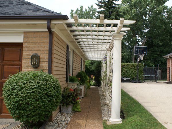 Para não precisar contratar semanalmente uma Empresa Especializada para fazer a limpeza da calha, seja criativo com soluções práticas. Veja um exemplo inteligente, onde um detalhe estético (no caso uma pérgola) serve de "passarela" onde a faxineira pode fazer a limpeza com segurança.