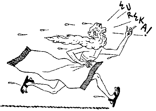 De repente, saiu correndo, pelado mesmo, pelas ruas e gritando EUREKA! EUREKA! (que em grego significa descobri)