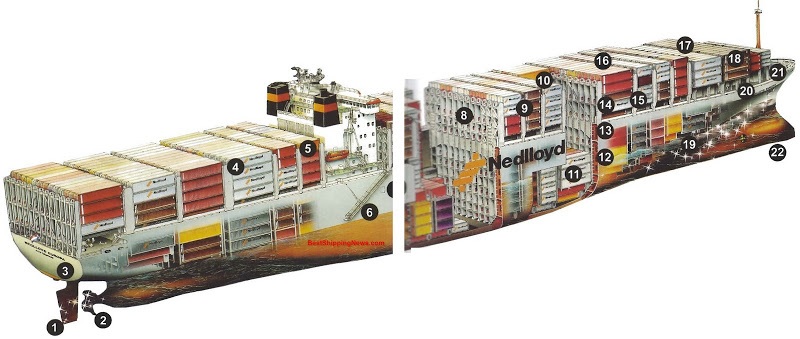 Veja um corte de um transportador de containeres durante a construção: